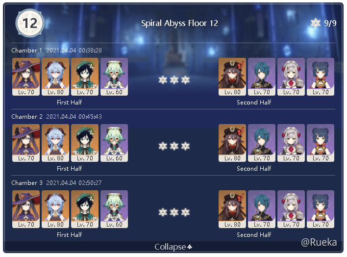 . ⌛ We are collecting v2.7 data (112.20%)To speed up this process, please submit your data below See strategy and how to 9 stars, tips, enemies, f2p teams, elements, best characters, & more for Spiral Abyss Floor 12.